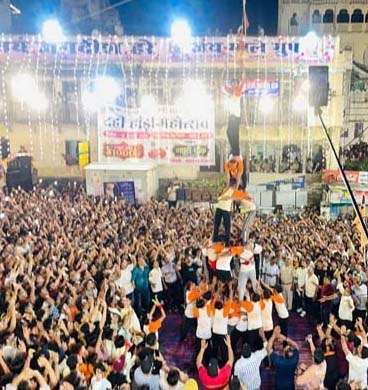 उदयपुर, 17 अगस्त: धर्मोत्सव समिति मेवाड़ की ओर से भगवान श्रीकृष्ण जन्मोत्सव के उपलक्ष्य में रविवार को जगदीश चौक पर दही हांडी प्रतियोगिता का धूमधाम से आयोजन किया गया। इस आयोजन में शहर की सात टीमों ने जोश और उत्साह के साथ हिस्सा लिया। श्रीराम क्लब ने 24 फीट ऊंची मटकी फोड़कर इतिहास रचते हुए लगातार दूसरी बार प्रतियोगिता जीती। पिछले साल भी श्रीराम क्लब ही विजेता रहा था।