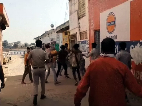 पुलिस के सामने दो गुटों में चले लात-घूंसे