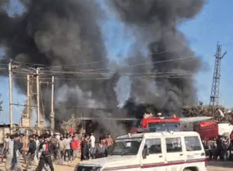 निंबाहेड़ा में शॉर्ट सर्किट से टायर की दुकान में भीषण आग, तीन युवक झुलसे