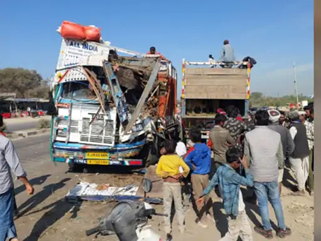 कोहरे में खड़े ट्रेलर से भिड़ा पशुओं से भरा ट्रक, 48 भेड़-बकरों की मौत