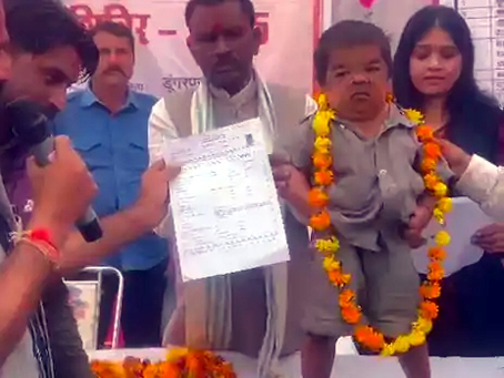 डूंगरपुर, 19 दिसम्बर: डूंगरपुर जिले के सागवाड़ा क्षेत्र में आयोजित ग्रामीण सेवा शिविर के दौरान एक 42 वर्षीय व्यक्ति की स्थिति ने सभी को चौंका दिया। भरत दर्जी नामक व्यक्ति जब अपनी पेंशन के कागजात लेकर शिविर में पहुंचा तो उसकी मात्र 2 फीट (24 इंच) लंबाई देखकर विधायक से लेकर अधिकारी तक हैरान रह गए। गंभीर स्थिति को देखते हुए विधायक शंकरलाल डेचा ने तत्काल उसकी पेंशन स्वीकृत करने के निर्देश दिए, जिस पर अधिकारियों ने त्वरित कार्रवाई करते हुए स्वीकृति जारी कर दी।