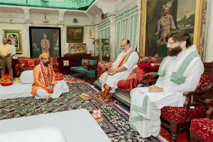 उदयपुर, 23 अक्टूबर: मेवाड़ पूर्व राजपरिवार के सदस्य डॉ. लक्ष्यराज सिंह मेवाड़ ने दीपावली के पंचदिवसीय महापर्व के पावन अवसर पर कांकरोली स्थित प्रभु श्री द्वारकाधीश मंदिर और मेदपाट कुलगुरु गोस्वामी डॉ. वागीशकुमारजी महाराजश्री से आशीर्वाद प्राप्त किया।