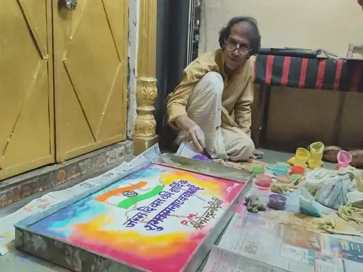 यह कृति पारंपरिक प्राकृतिक रंगों से तैयार की गई, जिसे बनाने में करीब दस घंटे लगे। झांकी के चारों ओर रंग-बिरंगी गुलाल सजाकर उन्होंने देश की एकता और खुशहाली की कामना की।