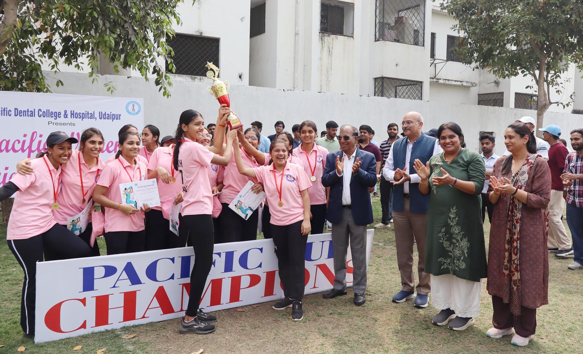 उदयपुर, 23 फरवरी: पैसिफिक डेंटल कॉलेज एंड हॉस्पिटल, देबारी के स्पोर्ट्स ग्राउंड पर आयोजित तृतीय पैसिफिक महिला क्रिकेट कप 2026 में शानदार मुकाबलों के बाद मेजबान पीडीसीएच ने ट्रॉफी अपने नाम कर ली। प्रतियोगिता में विभिन्न डेंटल कॉलेजों की टीमों ने उत्साह और खेल भावना का परिचय दिया।