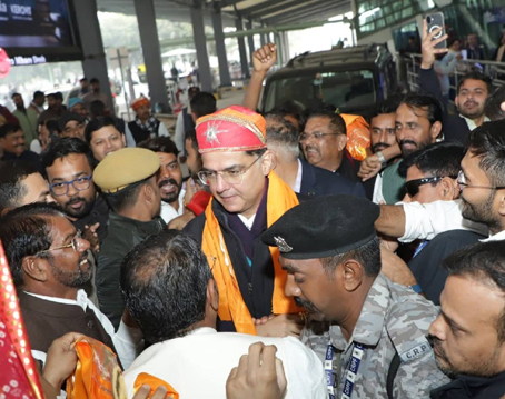 सचिन पायलट रविवार सुबह करीब 7:30 बजे डबोक एयरपोर्ट पहुंचे, जहां कांग्रेस नेताओं और कार्यकर्ताओं ने उनका गर्मजोशी से स्वागत किया। शहर जिला कांग्रेस अध्यक्ष फतेह सिंह राठौड़ और देहात जिला अध्यक्ष रघुवीर सिंह मीणा के नेतृत्व में कार्यकर्ताओं ने पायलट का मेवाड़ी पगड़ी पहनाकर और माल्यार्पण कर अभिनंदन किया। इसके बाद पायलट भुवाणा क्षेत्र पहुंचे, जहां उन्होंने पीसीसी सदस्य दुर्गा सिंह राठौड़ के पिता के निधन पर उनके निवास पर पहुंचकर शोक संवेदना व्यक्त की।