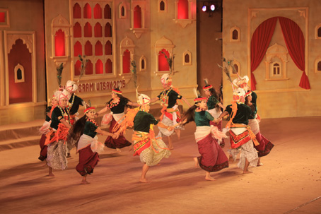 उदयपुर, 23 दिसम्बर: गुजरात के आदिवासी डांस राठवा में नर्तकों और नर्तकियों ने जब खूबसूरत बैलेंस का प्रदर्शन किया तो दर्शक सम्मोहित और चकित हो गए। इसमें जब नर्तकियों को अपने कंधों पर खड़ा कर, पिरामिड बना नर्तकों ने डांस किया तो दर्शकों ने तालियों की गड़गड़ाहट से शिल्पग्राम गूंजा दिया। शिल्पग्राम उत्सव के दौरान इस प्रस्तुति मंगलवार की शाम मुक्ताकाशी मंच पर खूब धूम मचाई। उत्तर क्षेत्र सांस्कृतिक केंद्र, उदयपुर की ओर से आयोजित किए जा रहे दस दिवसीय शिल्पग्राम उत्सव के तीसरे दिन शाम को मुख्य कार्यक्रम में इसके साथ ही अन्य राज्यों की प्रस्तुतियों ने उत्सव की थीम ‘लोक के रंग-लोक के संग’ को साकार कर दिया। इन प्रस्तुतियों ने दर्शकों के दिलों को झंकृत कर दिया।