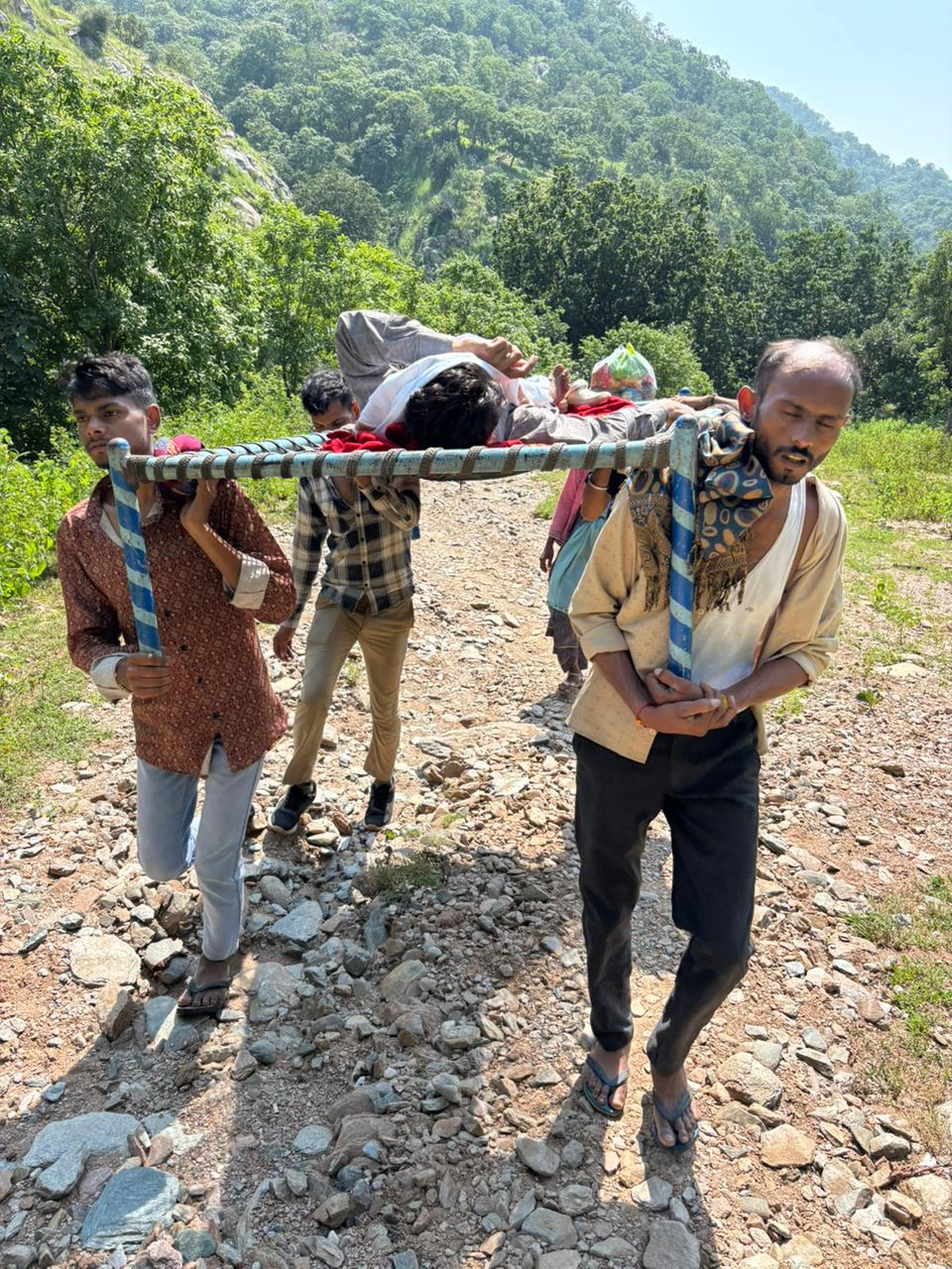 ग्रामीण प्रभुलाल मीणा ने बताया कि लक्ष्मणलाल मीणा (पुत्र हीरालाल) का हाल ही में उदयपुर में ऑपरेशन हुआ था। घर लौटने के बाद अचानक उनकी तबीयत बिगड़ गई। रातभर हालत गंभीर बनी रही। सुबह परिजनों ने मजबूरी में उन्हें खाट पर डालकर तीन किलोमीटर कच्ची पगडंडी से बामनिया रोड तक पैदल पहुंचाया। वहां से एंबुलेंस बुलाकर उदयपुर अस्पताल भेजा गया, जहां फिलहाल उनका इलाज जारी है।