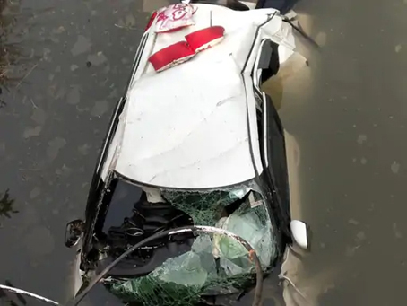 वरदा में पुलिया से नीचे गिरी बेकाबू कार