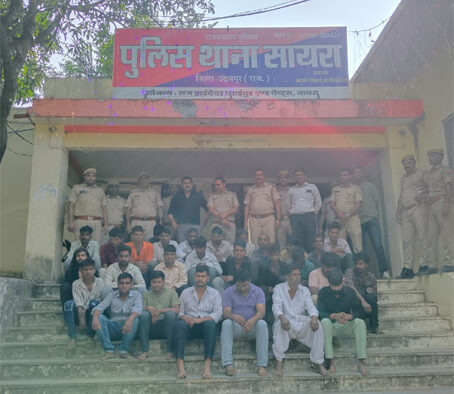 उदयपुर, 24 अक्टूबर: उदयपुर जिले के सायरा थाना क्षेत्र में सड़क हादसे के बाद भड़के उपद्रव के मामले में पुलिस ने बड़ी कार्रवाई की है। गुरुवार को बरवाड़ा गांव के पास नेशनल हाईवे पर कार की टक्कर से बाइक सवार अंबालाल गमेती की मौके पर ही मौत हो गई थी। इसके बाद मृतक के परिजन और ग्रामीणों ने शव को सड़क पर रखकर हाईवे जाम कर दिया और पुलिस पर पथराव शुरू कर दिया था। इसमें पुलिसकर्मी घायल हो गए थे।